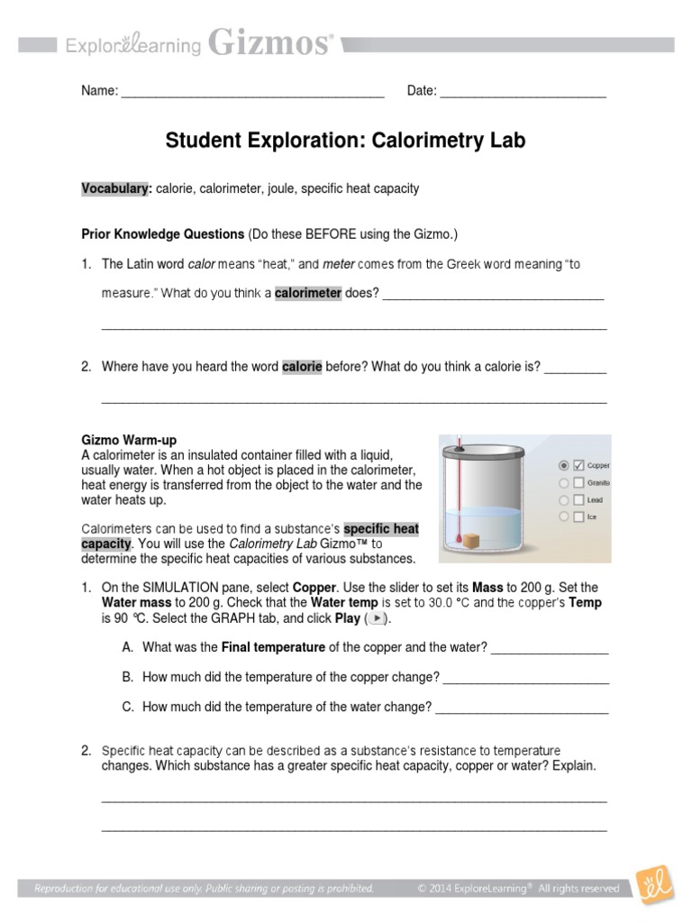 Gizmo Calorimetry Lab Exploration Pdf Calorie Heat